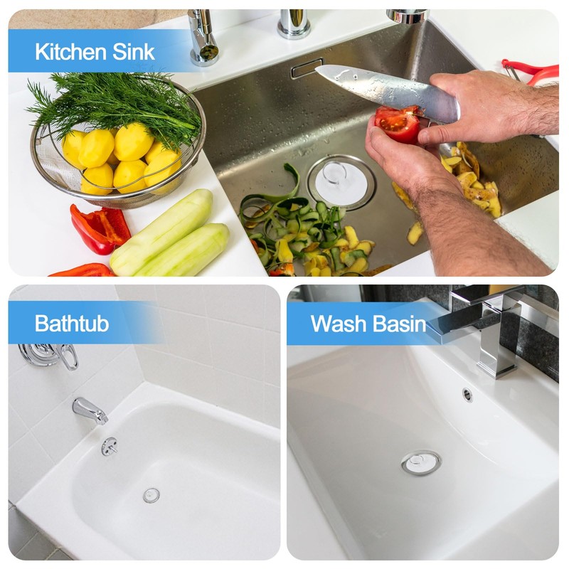 [Easy to Use] - This bathtub plug is very simple to use. Just choose a sink plug of the right size and press it into the drain to seal it without worrying about leaks.