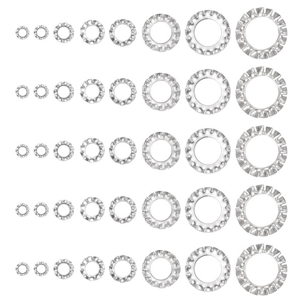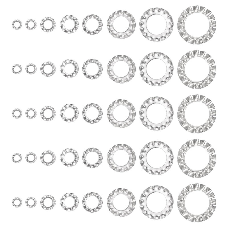 uxcell 300Pcs External Tooth Washers Assortment Kit, 304 Stainless Steel Tooth Locking Ring Washers Quick Speed Star Nut Locking Fastener Fastener, Silver