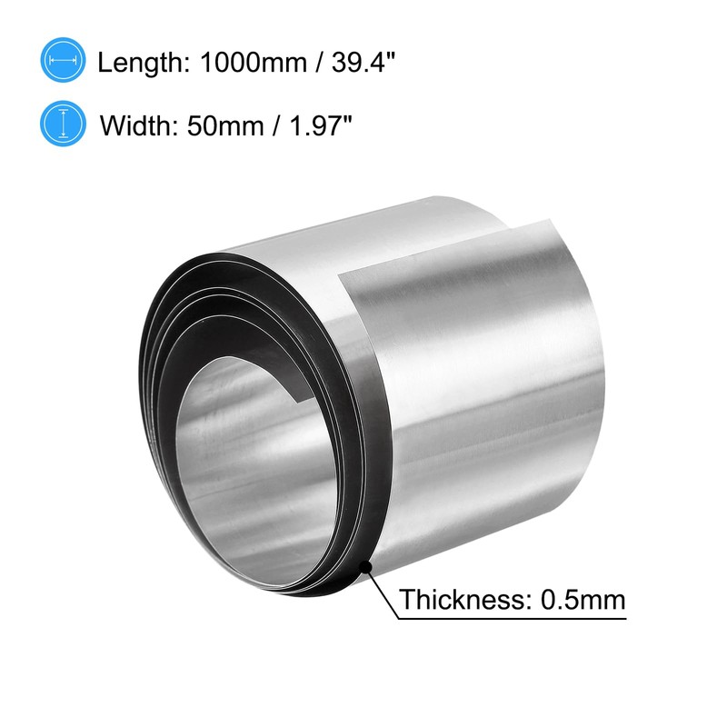 uxcell 304 Stainless Steel Foil Roll 0.5mm x 50mm x 1M Polished Metal Strip Plate Sheet for Craft Electronics Silver Tone Set of 2