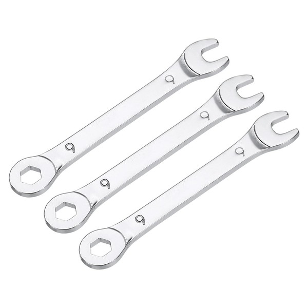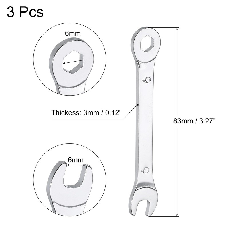uxcell 3pcs 6mm Thin Combination Wrench with Offset 6-Point End and 15° Angled Open End Multi-function Metric Mirror-Chrome Plated High Carbon Steel Spanners for Maintenance and Repairs