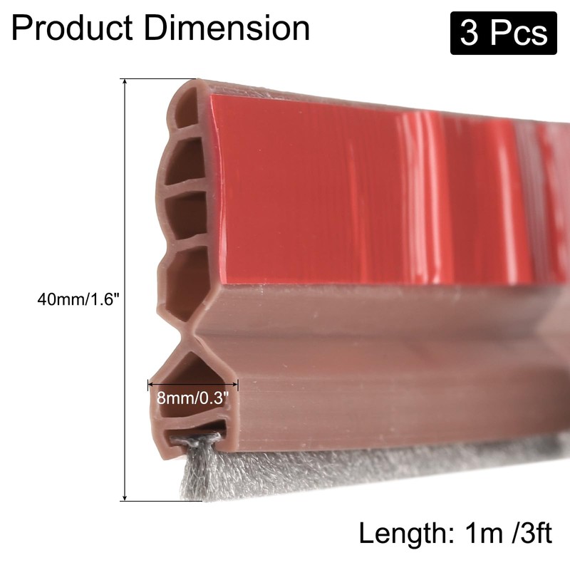 uxcell 3pcs Door Draft Stopper, Self Adhesive Door Sweep for Bottom of Door with Brush for Keeping Out Cold, Inside and Outside Door, Door Bottom Seal Blocker Noise (3Ft, Brown)
