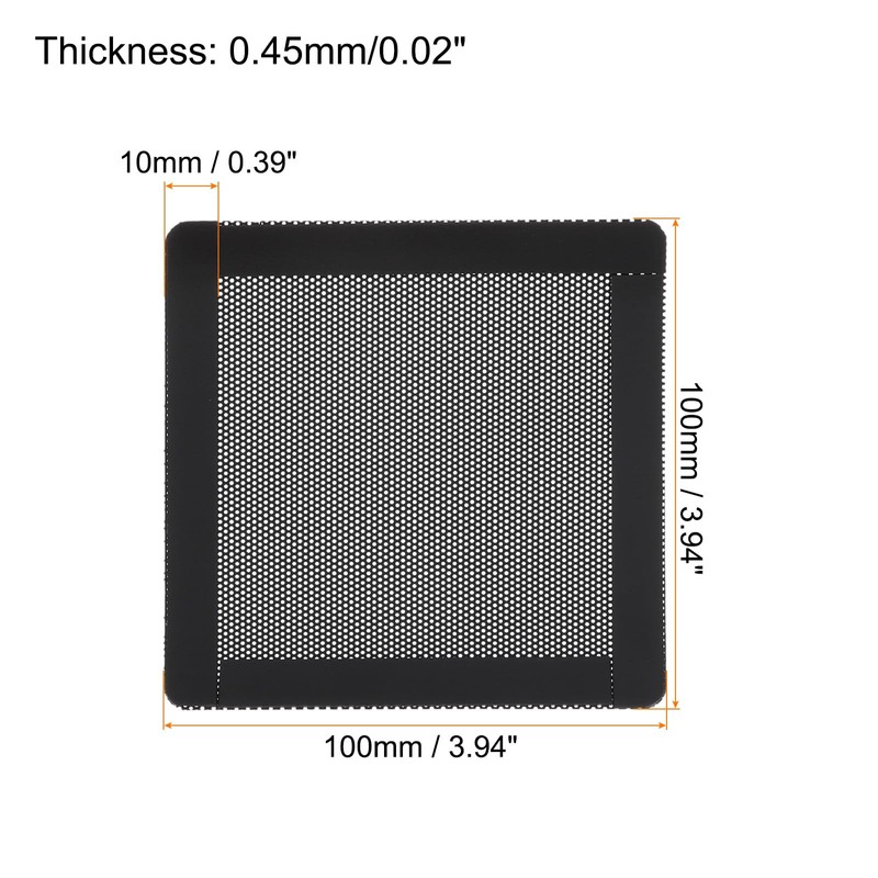 • Size: 100 x 100mm / 3.94 x 3.94"(L x W); Magnetic Strip Width: 10mm / 0.39";Hole Diameter: 0.8mm / 0.03";Thickness: 0.45mm / 0.02";Color: Black; Material: PVC; Style: Magnetic mesh cover without round corners holes; Package Includes: 3 PC case accessories