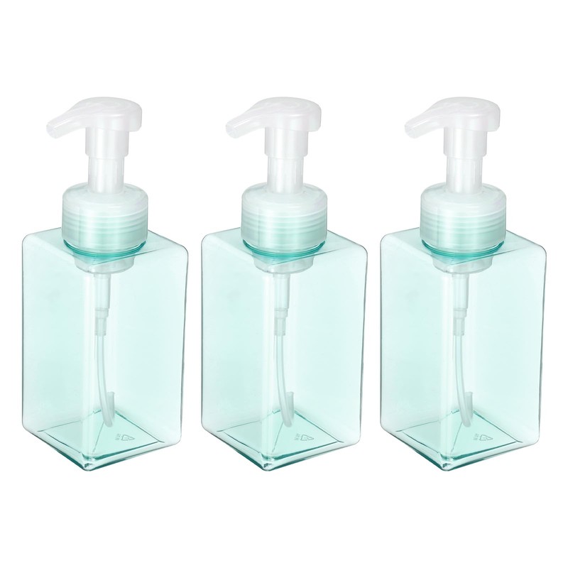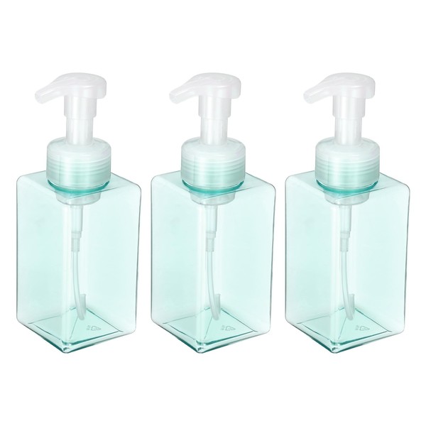 uxcell 3PCS Square Empty Foam Pump Bottle, 450ml Travel Foam Soap Dispenser Empty Refillable Plastic Pump Bottle for Lash Shampoo, Hand Soap, Facial Lotion(5.7", Clear Blue)
