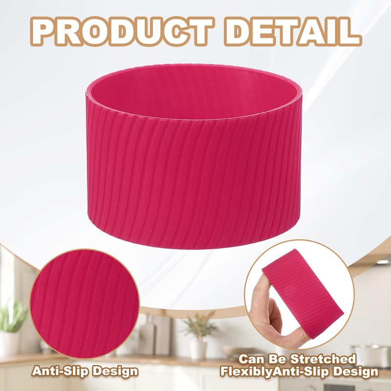 uxcell 4パック コーヒーカップスリーブ 再利用可能なシリコン製耐熱カップ保護スリーブ 滑り止めマグプロテクターカバー 家庭用旅行用コーヒーカップグラス水筒ブーツ用 ローズレッド