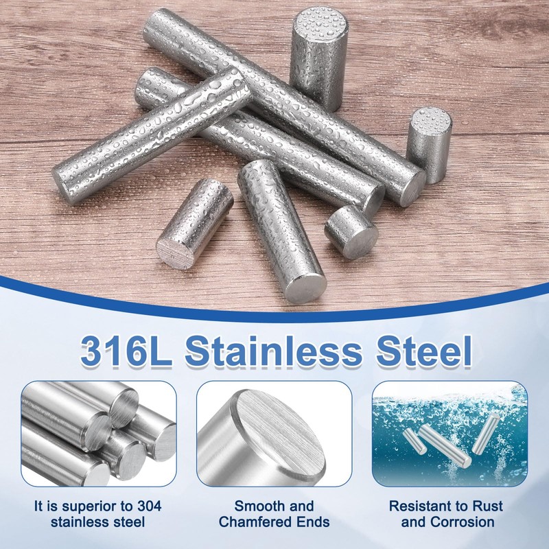 - [Durable Material] These locating pins are crafted from 316L stainless steel, which is superior to 304 stainless steel. These pins offer exceptional corrosion resistance, ensuring they remain rust-free and maintain their integrity over time.