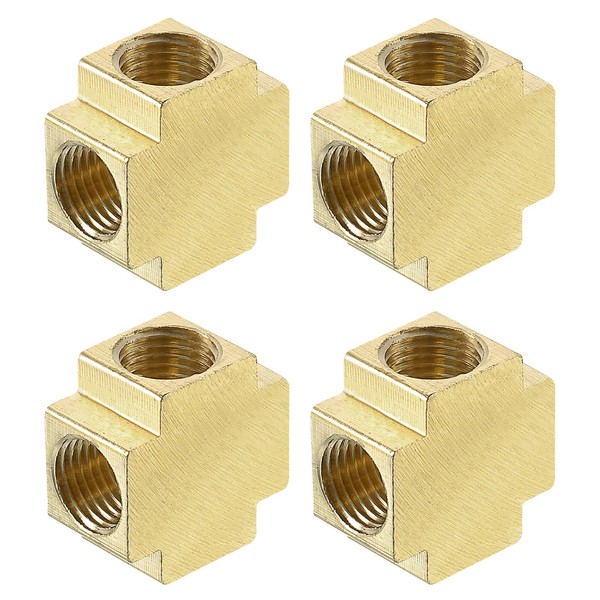 uxcell 4Pcs Brass 4 Way Pipe Fitting, G1/4" Female Barstock Cross Fitting Pipe Adapter for Water/Fuel/Air Transport Connect Pipelines