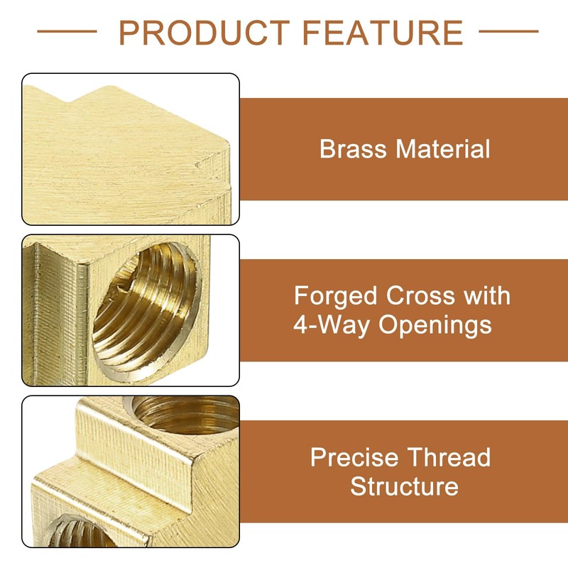 - [MATERIAL]: Our cross connector is made of brass material, which has strong wear resistance, fine workmanship, beautiful appearance, corrosion resistance, heat resistance, low-temperature strength, and good mechanical properties, strong and durable. You can use our brass connector for a long time