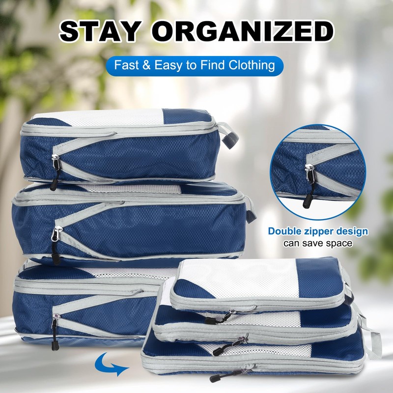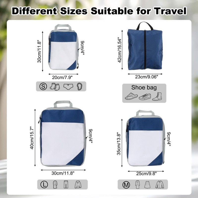 uxcell 4Pcs Compression Packing Cube for Travel, See Through Mesh Waterproof Nylon Luggage Organizer Bags Lightweight Compression Cube for Outdoor Carry on Suitcases Backpack, Navy Blue