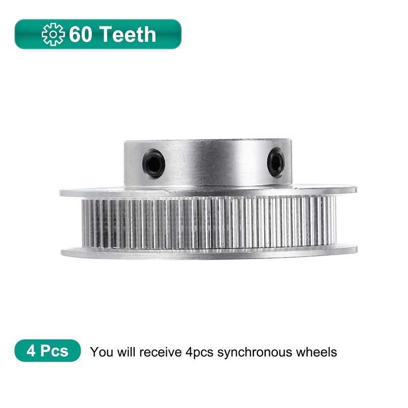 uxcell 4pcs GT-2 60T Pulley Synchronous Wheel 10mm Bore, Aluminum Timing Pulley 60 Teeth, Fit Width 6mm Timing Belt for 3D Printer CNC Machine