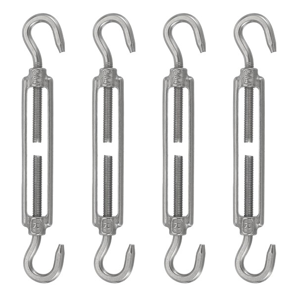 uxcell 4Pcs M6 Hook and Hook Turnbuckle 304 Stainless Steel Wire Rope Tension, Adjustable Turnbuckle for Cables Wire, Shade Sail, Clothesline, Rope Tension, Silver