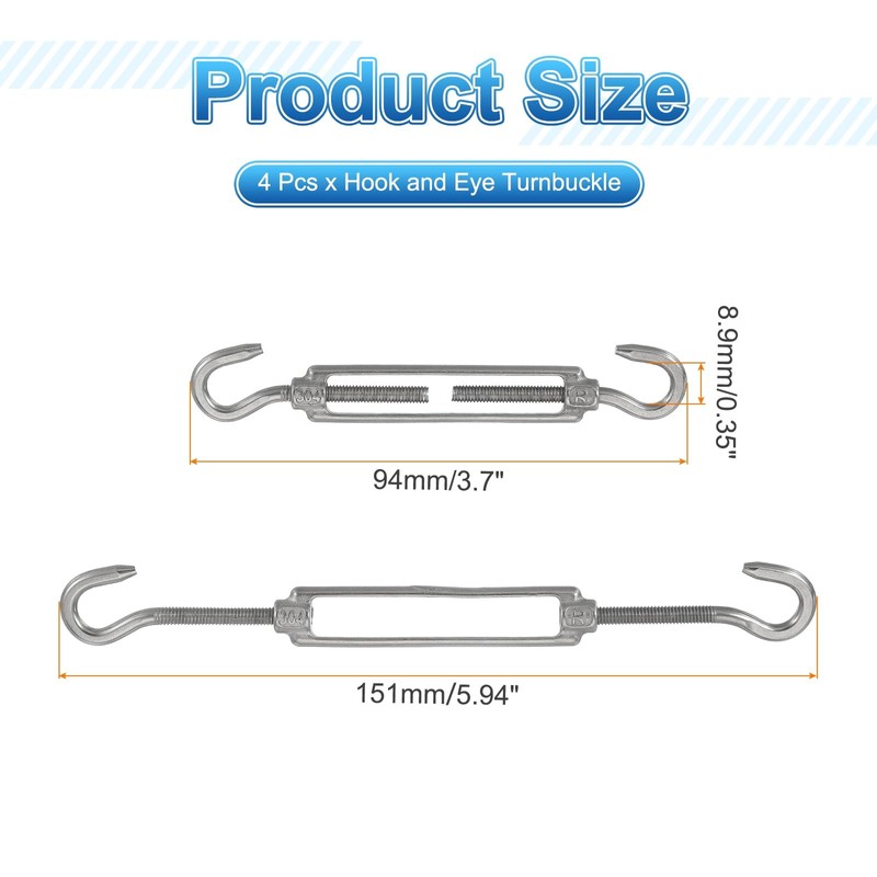 Package Content: 4 x Hook and Eye Turnbuckle