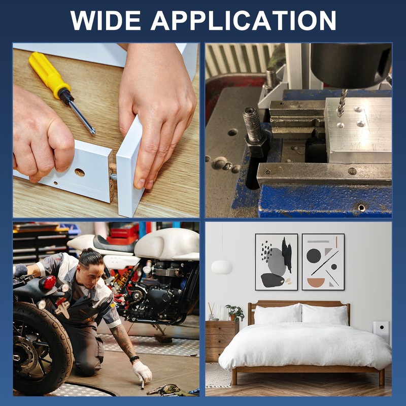 Widely Applicable - Dowel pins can be commonly used in mechanical manufacturing, industry, furniture installation, and small DIY projects. Such as wood products, beds, bookcases, shelves, outdoor awnings, cabinet partitions, etc.; metal equipment such as punching presses, industry, clamps, pin gauges, hinges, or shaft fixing applications.