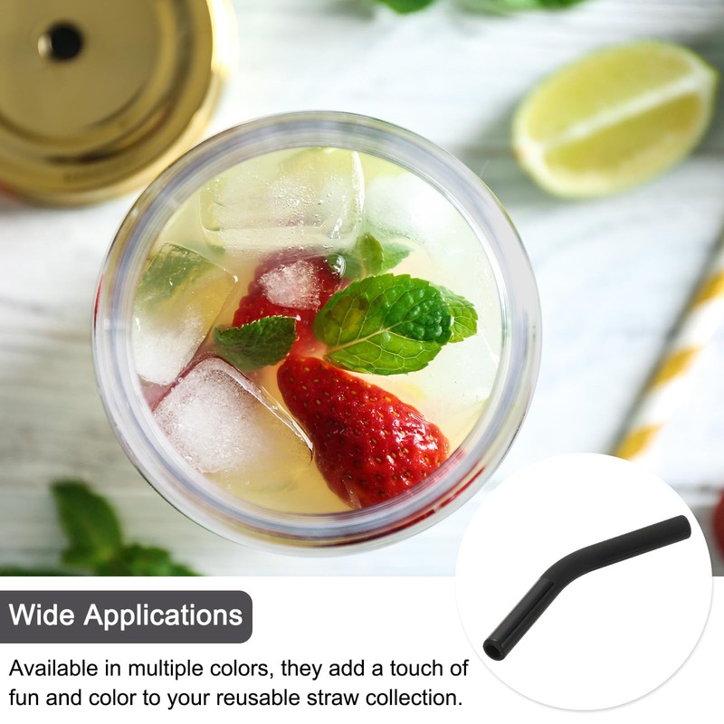 - [Product Dimension] Outside Diameter: 8mm/0.31"; Inside Diameter: 6mm/0.24"; Height: 85mm/3.35"; Color: Black; Package Contents:4pcs x Reusable Silicone Straw Elbows Tips.