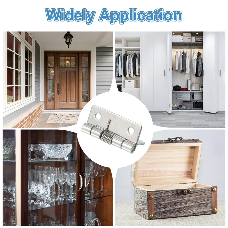 Widely Applicable - The self-opening spring hinges are suitable for a variety of applications, such as cabinet doors, closet doors, storage cabinet doors, bookcase doors, bedroom doors, bathroom doors, kitchen cabinet doors, tool boxes, cosmetic boxes, etc