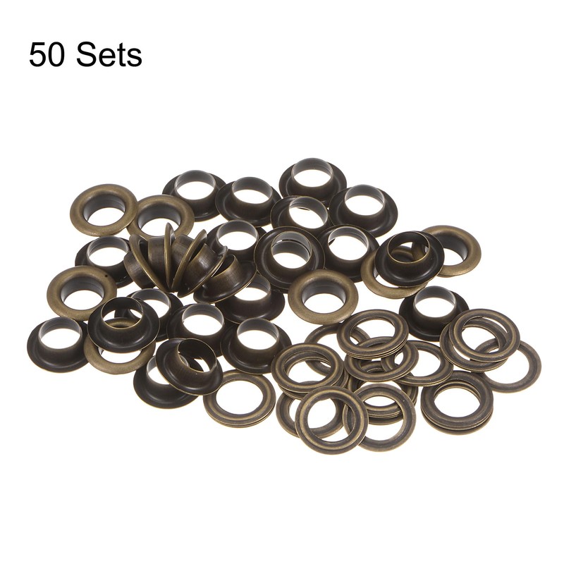 uxcell 50 Sets 10mm 2/5" Hole Copper Grommets Eyelets Bronze Tone for Fabric Leather Canvas Curtain Clothing