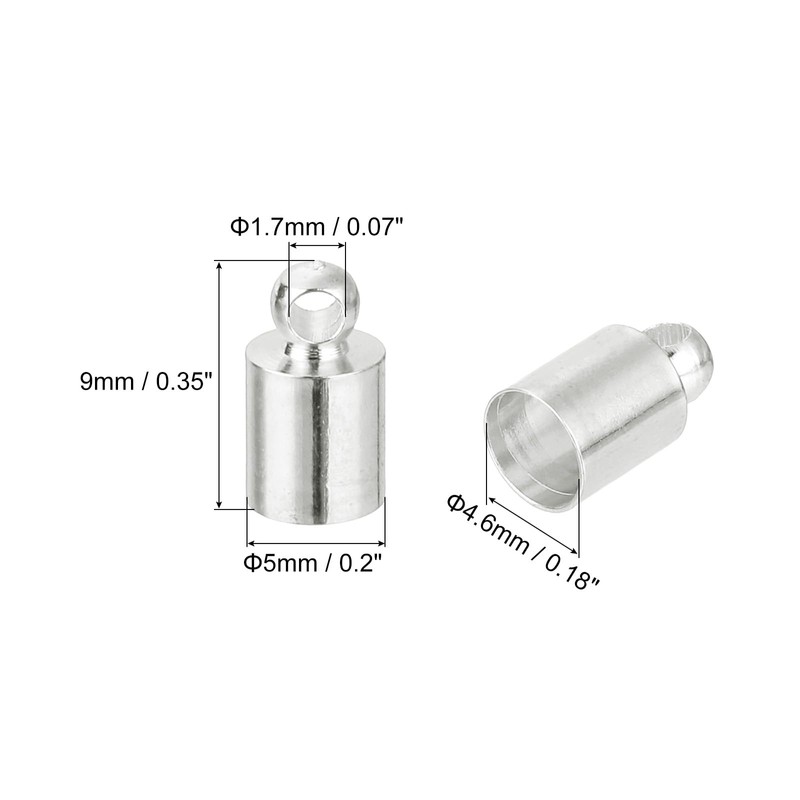 uxcell 50Pcs Leather Cord End Caps, 5mm OD Column Barrel Terminators, Silver Tone
