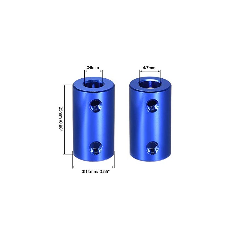 uxcell 6mm to 7mm Bore Rigid Coupling Set Screw L25XD14 Aluminum Alloy,Shaft Coupler Connector,Motor Accessories,Dark Blue,2pcs