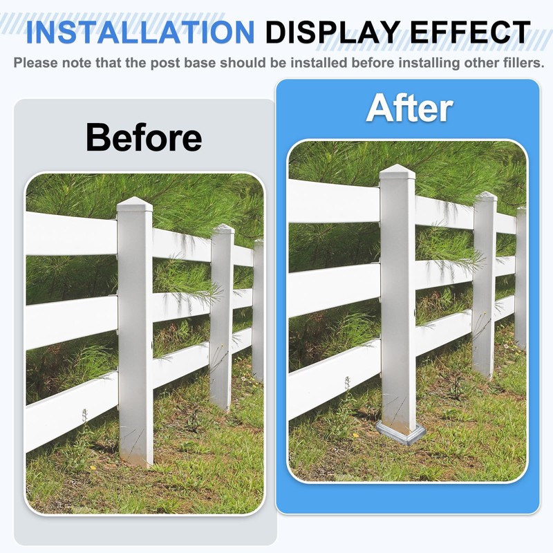 - [Easy to Install]: The post-base cover features a one-piece stable structure design, which is easy to install. Just choose the post skirt of the right size and put it on the post or railing base. This design ensures that the post skirt can fit tightly and is stable and not loose. Please note that the post base should be installed before installing other fillers