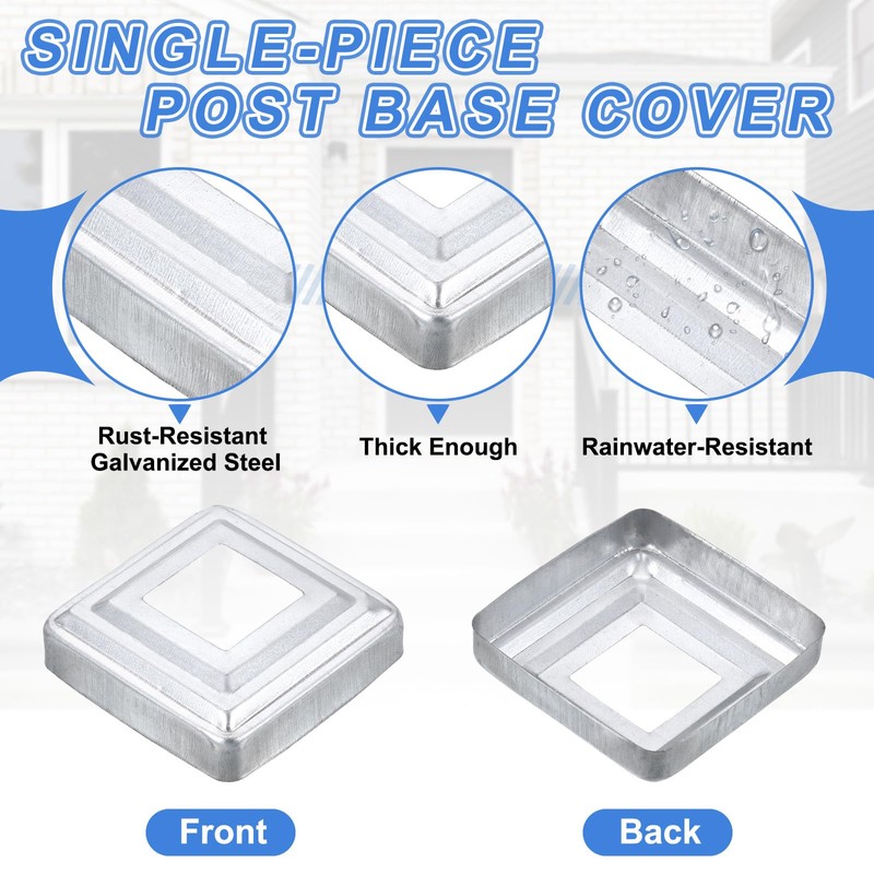 - [Post Base Protection]: The one-piece post skirt provides stable support for the railing, effectively preventing the post base from rusting or breaking due to long-term exposure to rainwater, protecting the bottom of the wooden post or railing, and extending its service life. It can also cover the joints and seams connecting the post parts, improving the visual beauty of the space