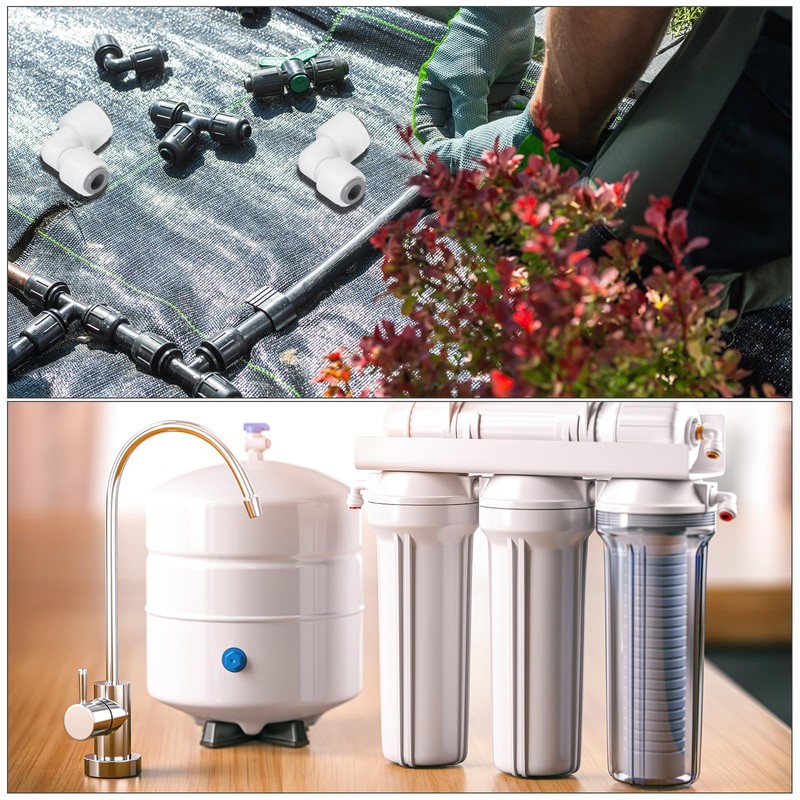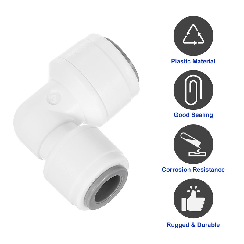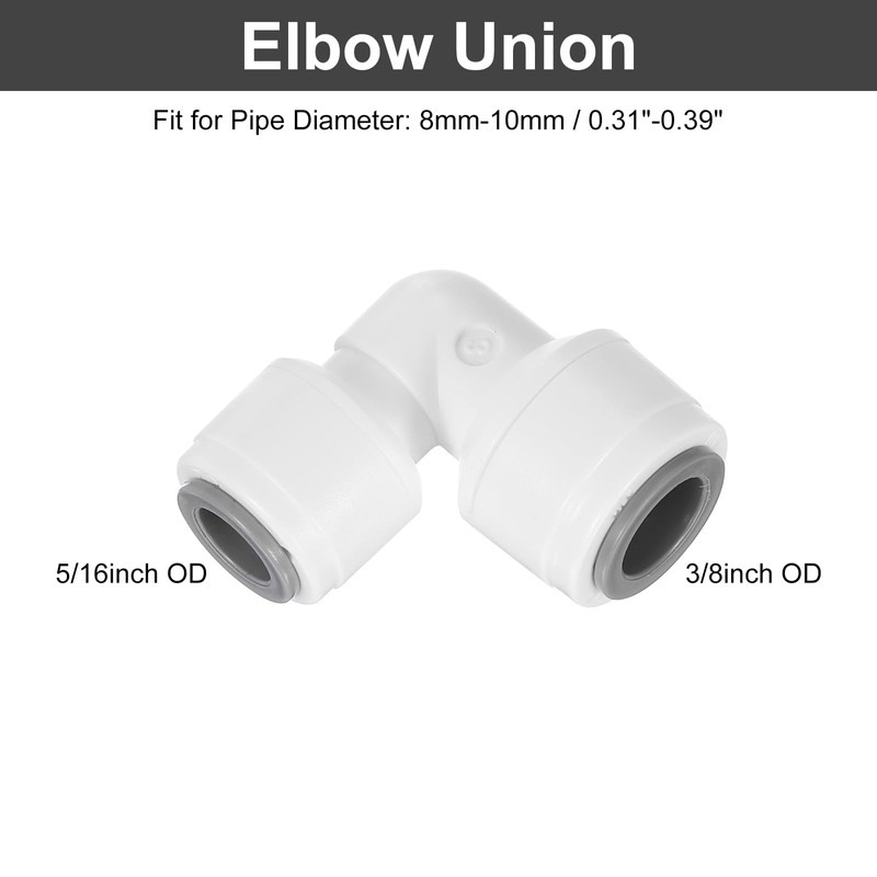 • Plastic Elbow Union Coupling: The package contains 6 pieces of push to connect fittings, fit for pipe diameter: 8mm-10mm / 0.31" - 0.39", please measure the pipe size before purchasing.