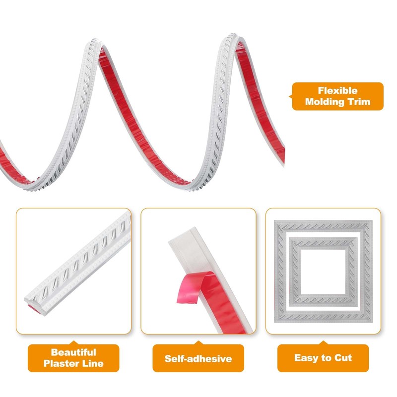 - Self-Adhesive Molding Trim: The trim's self-adhesive feature allows for a quick and easy installation and can be attached to almost any smooth surface, the flexible nature of the trim makes it suitable for various surfaces and contours for different shapes