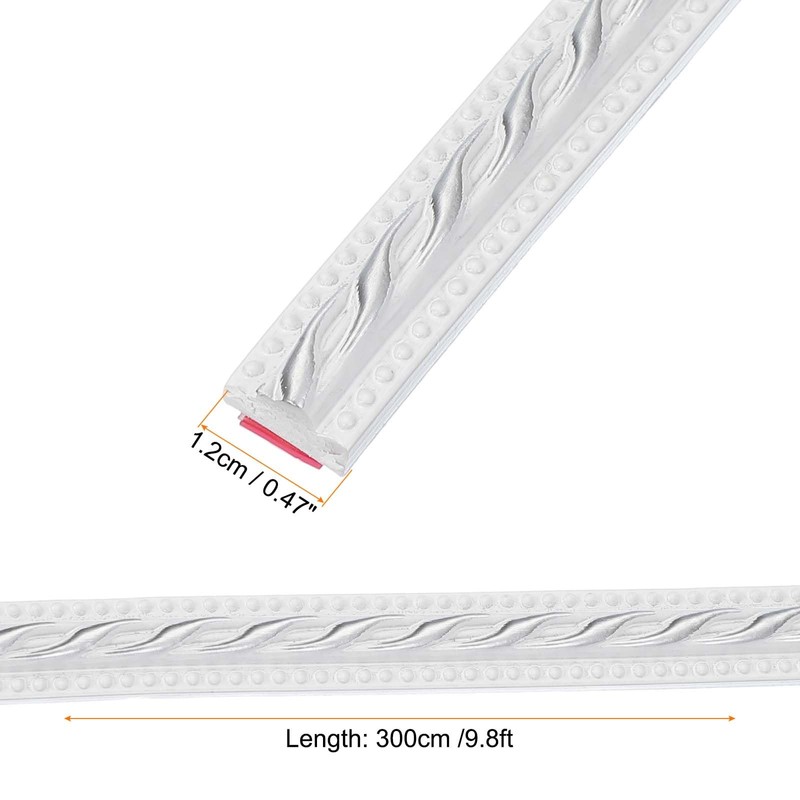 - Material: PVC; Color: White/Silver; Size: 300 x 1.2cm / 9.8Ft x 0.47inch ( L * W ); Package Includes: 1 Pcs x Molding Trim