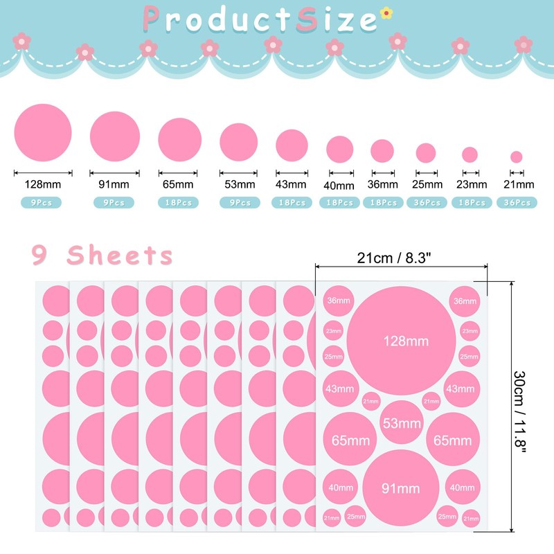 - Durable material: Made of PVC material, does not contain harmful substances, waterproof and easy to clean. You will receive 9 Sheets Polka Dots Wall Decals.