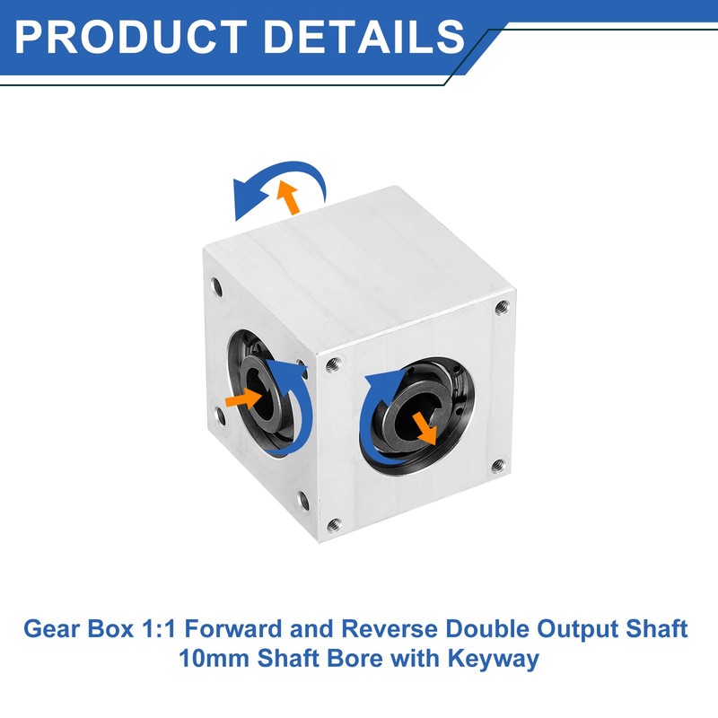 Model: Gear Box 1:1 Forward and Reverse Double Output Shaft 10mm Shaft Bore with Keyway
