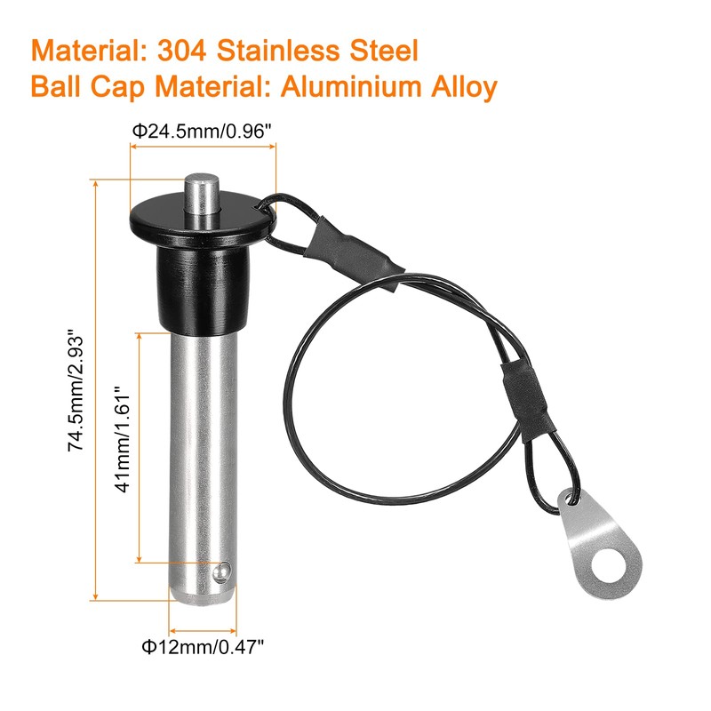 uxcell Ball Lock Pin 304 Stainless Steel Grip Push Button Lock Quick Release Pin with 24cm Wire 12mm-41mm