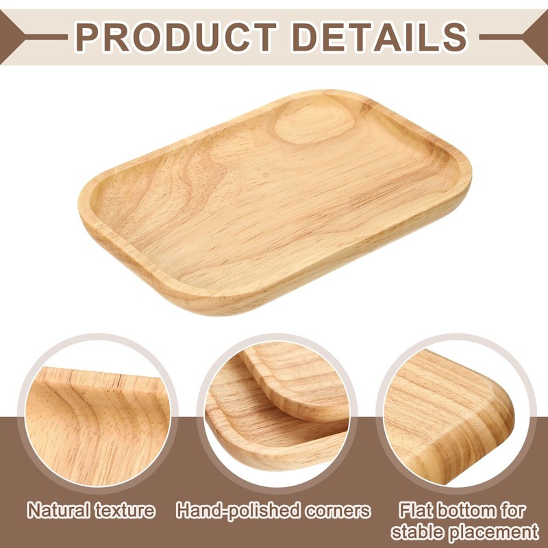 uxcell Bamboo Serving Tray, 7 x 5 Inch Square Wooden Trays Portable Serving Platters for Food Fruit, Snacks, Bread, Vanity, Weddings, Picnics, Khaki