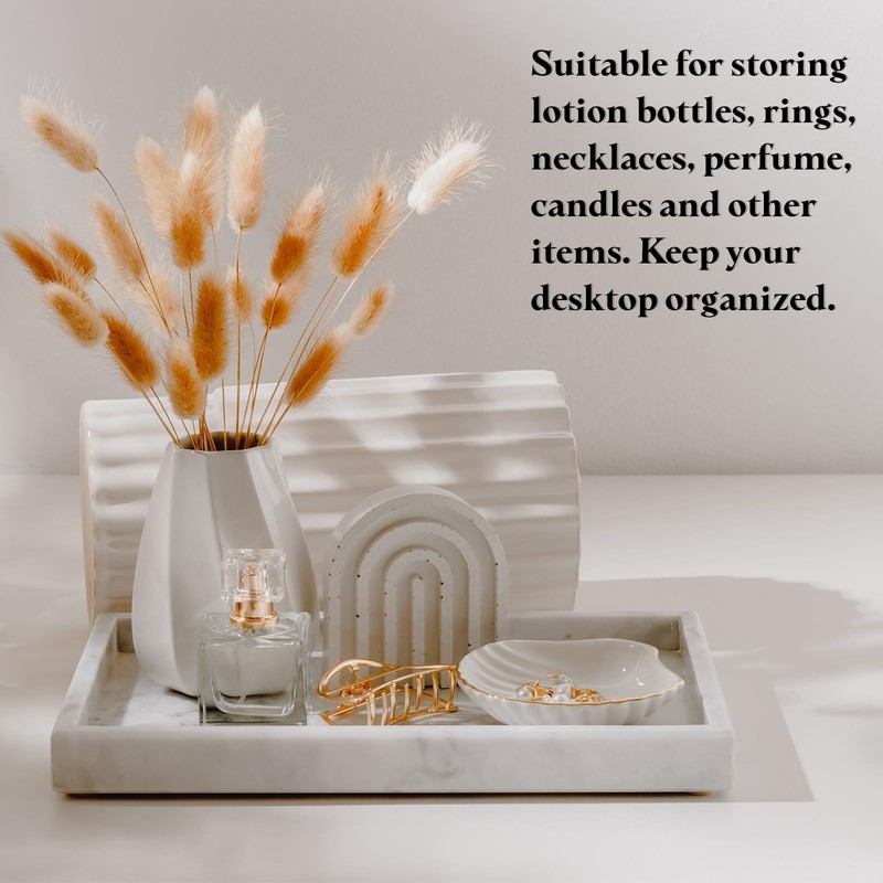 Wide Application: This makeup tray is suitable for bathrooms, kitchen sinks, desks, toilet tanks, and furniture decorations. It is very suitable for storing hand soap, sponges, lotion bottles, rings, necklaces, perfumes, candles, keys, coins, watches and other items. Keep your countertop neat and tidy.