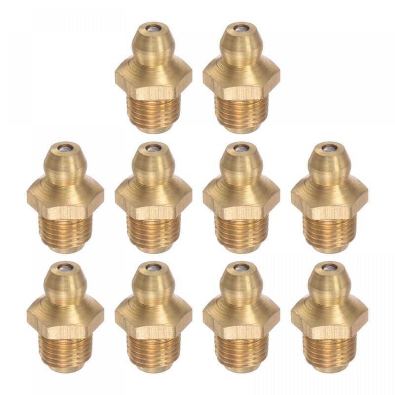 uxcell Brass Straight Grease Fitting Assortment 5/16"-32 Thread 10mm Width Hydraulic Grease Fitting Accessories, 10Pcs