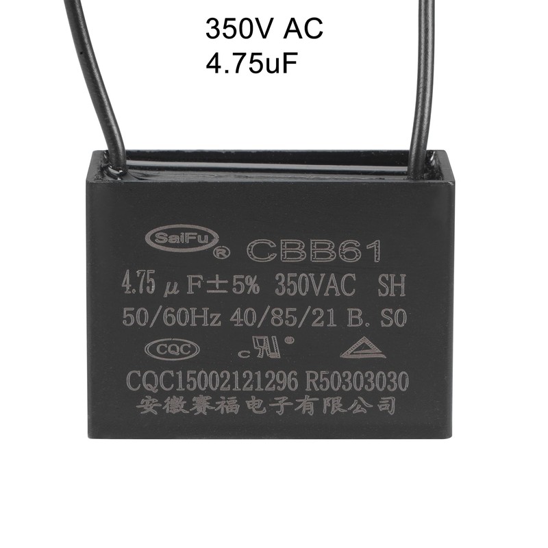 - [Specification] -Rated Capacity: 4.75uF; Tolerance: ±5%; Rated Voltage: 350V AC; Cover Size: 47x34x22mm / 1.9x1.3x0.9inch; Rated Frequency: 50/60Hz; Climatic Category: 40/85/21