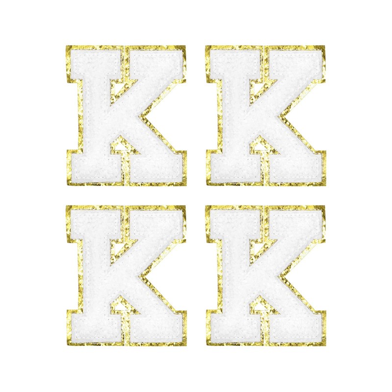 uxcell Chenille Letter Patch Iron on Letter Patches for Clothes, Shoes, Hats and Backpacks, Kanji K 80mm Height, White, 4 Pcs