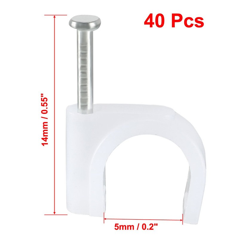 Package Content: 40 (+/-2%) Pcs x Round Cable Clip Nail