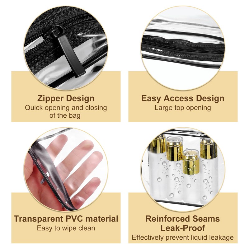 Durable Material: The transparent toiletry bag is made of thick transparent PVC material, which is durable and easy to wipe clean.