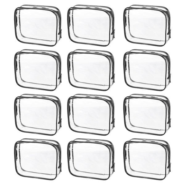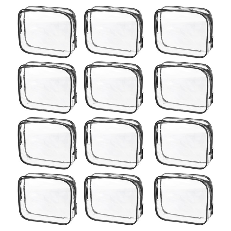 uxcell Clear Toiletry Bag, 12 Pcs PVC Transparent Makeup Bag for Women Man, Cosmetic Pouch Bags with Zipper for Travel Makeup Organizer Pouch, Black(L Size)