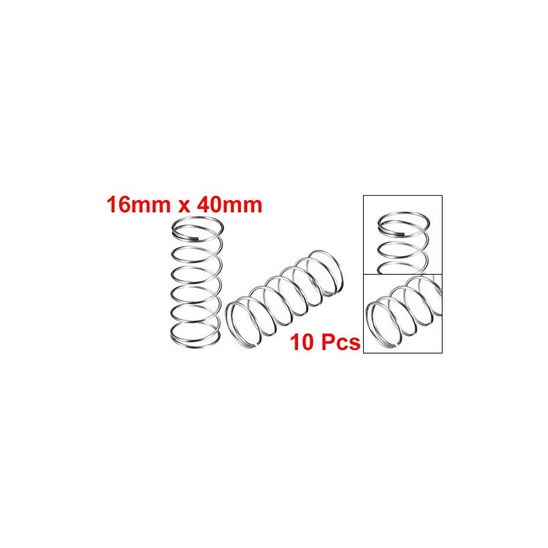 - Wire diameter: 0.04 inch (1 mm); Outer diameter: 0.6 inch (16 mm); Free length: 1.6 inch (40 mm)