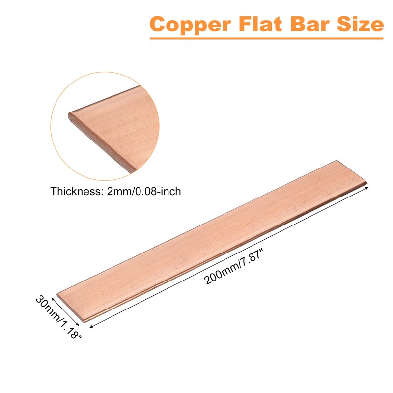 - [Copper Flat Bar] - Package includes 1 piece copper bar stock in the following sizes: length: 200mm/7.87"; width: 30mm/1.18"; thickness: 2mm/0.08"