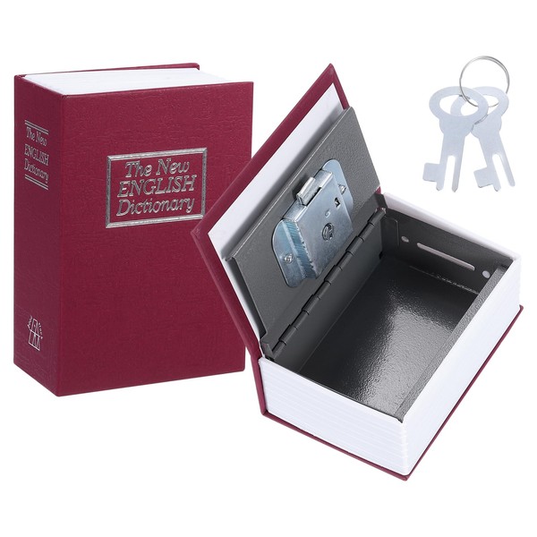 uxcell Diversion Book Safe, 4.53" x 3.35" x 1.77" Simulation Book Hidden Box, Decorative Book Safe Lock Box with Key Lock for Home Bookshelf Store, Red