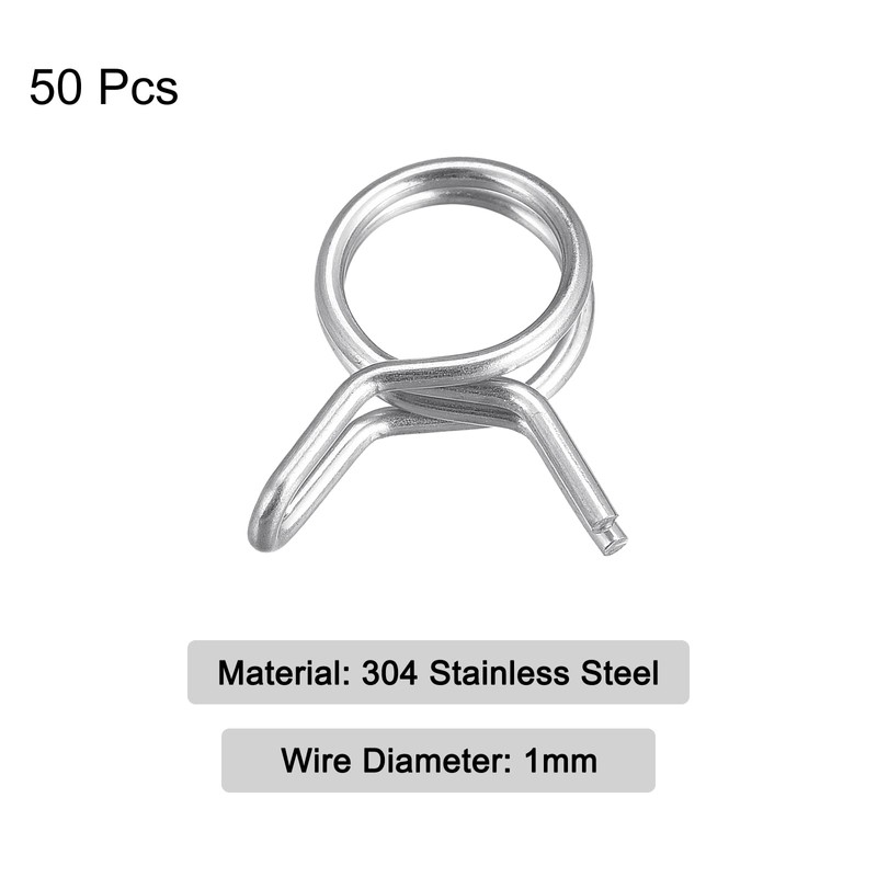 uxcell Double Wire Spring Hose Clamp, 50pcs 304 Stainless Steel 7mm Inner Dia Fit 7.8mm-8.2mm OD Hose Fuel Line Silicone Tube Spring Clips