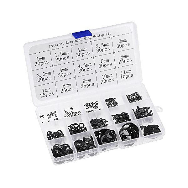 uxcell E-Clip Circlip - 400Pcs 15-Size External Retaining Shaft Snap Ring Carbon Steel Assortment Set