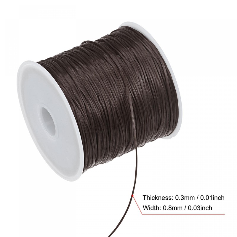- Specification - Color: Brown, Material: TPU, Thickness: 0.3mm / 0.01inch, Width: 0.8mm / 0.03inch, Length: 60m / 196ft. Generally used to wear single or multi-turn bracelets, the elasticity is relatively large, suitable for wearing beads above 4mm, 2 strands for 4-10mm beads, and 4 strands for beads 12mm and above.