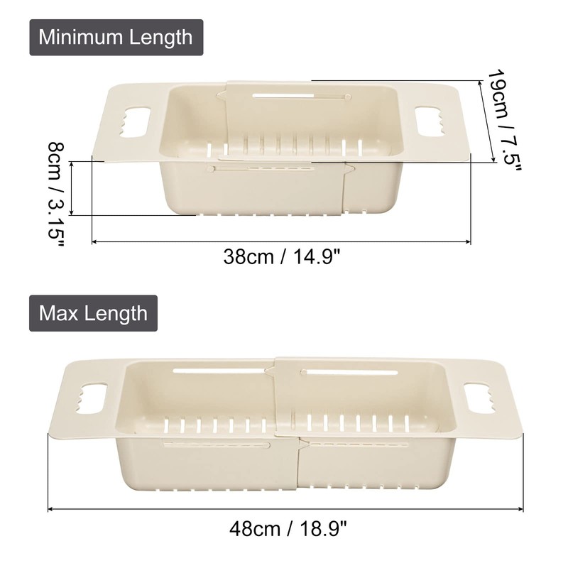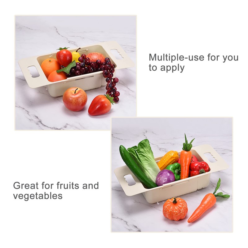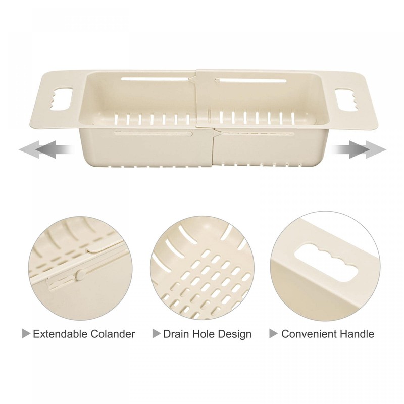 uxcell Extendable Over the Sink Strainer Fruit Vegetable Wash Basket Adjustable Colander for Kitchen Plastic Khaki