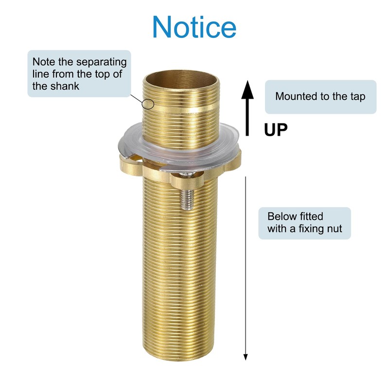 Material - This faucet mount extension shank is crafted from brass, ensuring durability, resistance to corrosion, and long-lasting reliability.