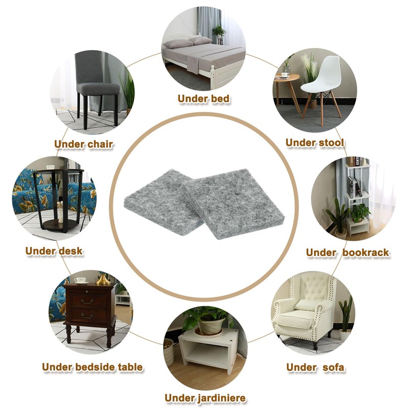 Application: These furniture pads protect hardwood, laminate, and tile floors from scratches and wear. They are suitable for all types of furniture, including beds, stools, sofas, bookcases, recliners, desks, dining tables, and coffee tables. They bring convenience to your life.