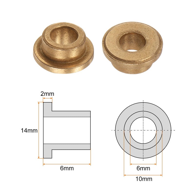 - Size - Bore Diameter: 6mm, Outer Diameter: 10mm, Total Length: 6mm, Flange Diameter: 14mm, Flange Thickness: 2mm Coefficient of Friction: 0.12-0.18
