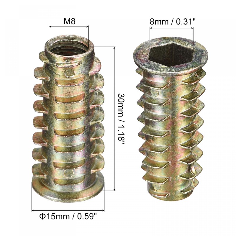 uxcell Furniture Screw Nuts, Zinc Alloy, Thread Insert Nuts, Color Zinc, For Wood, M8x30mm, 12 Pieces