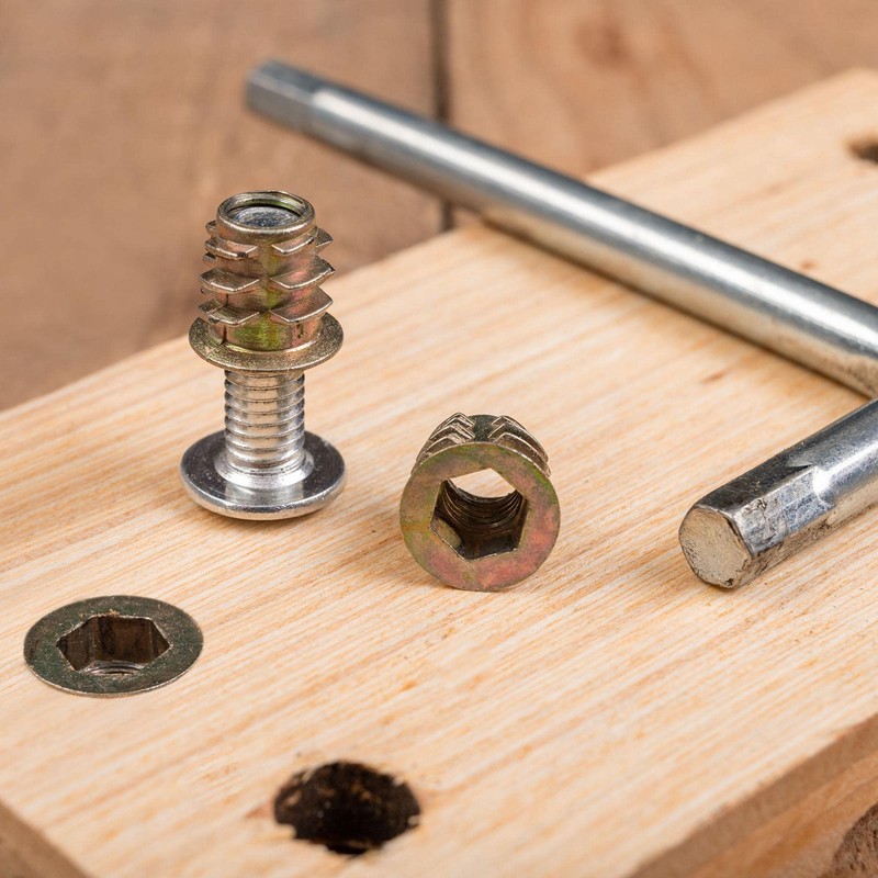 - Installation: Drill a hole with the corresponding bit size and lock the nut with a hex wrench. Mounting holes should not be larger than the outer diameter of the screw. When the nut is locked, the outer teeth can be applied with a woodworking bond to increase the holding effect
