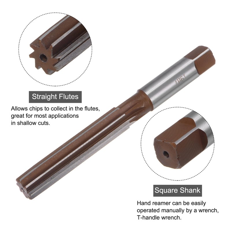 - Tips: Reamer drill bit can be easily operated manually by a wrench, T-handle wrench, extension rod, drill chuck. Used for light cut, repair work, removing stock or simply for enlarging holes. Pay attention to the chips generated during the reaming process. If chips begin to clog the reamer's chip flutes, cutting performance will be affected.